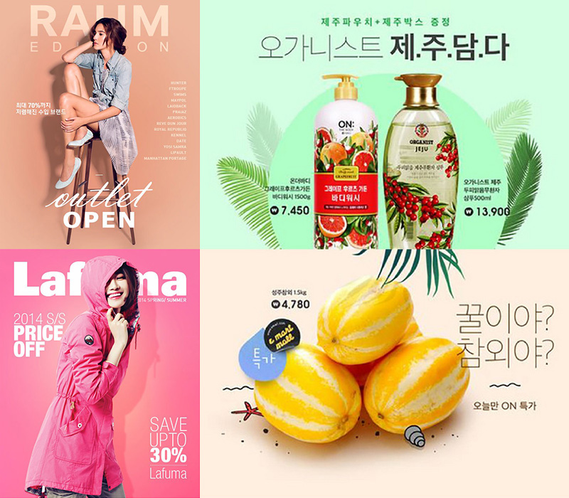 韩国也是有暴力型促销Banner出现的,不过相对比还是清晰些,这里还要说下天猫官方设计,现在的设计也都是很赞了,本人也是经常看的内心惊叹( 这个马屁我觉得拍的蛮好(✿◡‿◡) )!