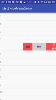 非阻塞式Android特色版本(我司自用版本 ) 平滑滚动动画用属性动画实现 ,即使有一个侧滑菜单处于打开状态,在打开其他item侧滑菜单时,依然无阻塞,会自动关闭上次开启的菜单:~