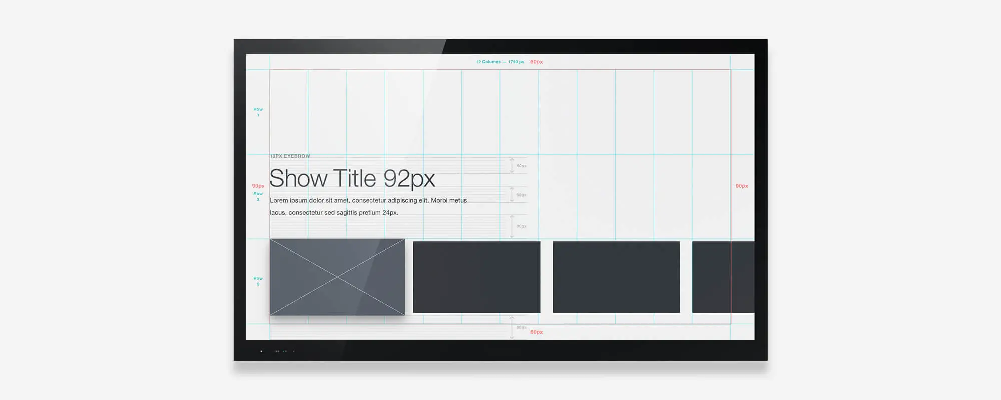以此开头,我们将画布设置为标准的HDTV分辨率:1920 x 1080px,上下60px外边距,左右90px外边距。后面我们会介绍4K。