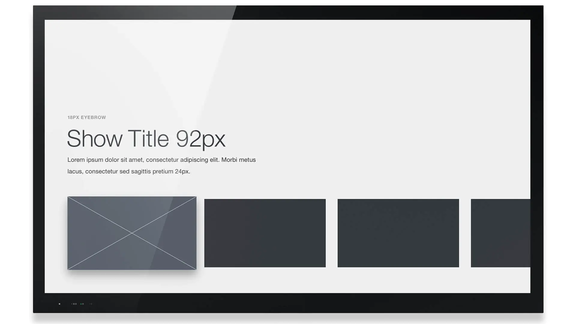 在10英尺的体验中,文字的处理尤其棘手。毫无疑问,要放大。字号与字重都要增加。我们发现18px是可阅读的最小字号,只适合不重要的标签,例如页面顶部标签。在我们的设计中,我们把标题设为92px,而正文设置成24px。