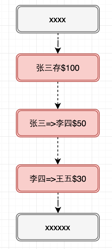 下面使用一个例子来解释一下。当有如下三个操作时就会在区块链中添加三条记录。