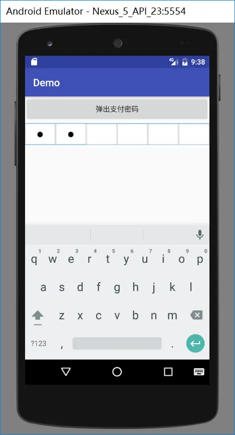 有些应用都有支付密码功能,而支付密码的密码输入框确实一个很好玩的控件。虽然网上有很多例子,但是我们网络上有很多实现好的demo,但是抽时间自己设计一个未尝不可啊。看一下效果图