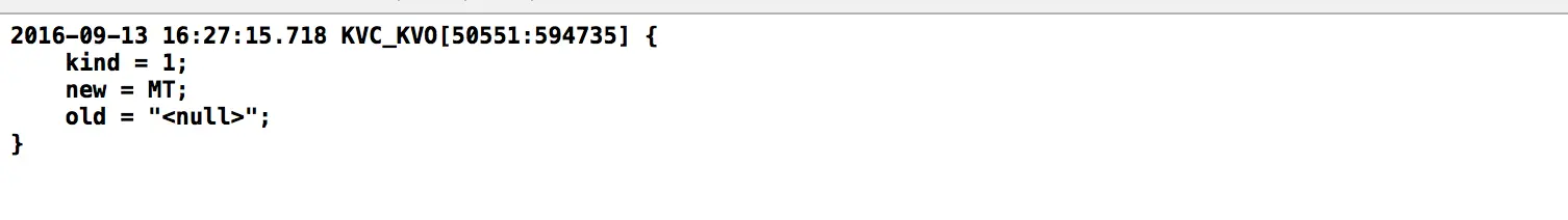 控制台打印如下信息,这就说明这种方式也可以触发KVO