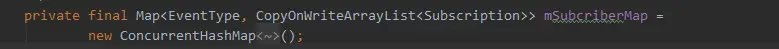 可以看到 这个mSubcriberMap 是一个以 EventType为键,Subscription类型的list集合为值。那EventType 和 Subscription 又是什么东东呢?接着查看这两个类的代码。