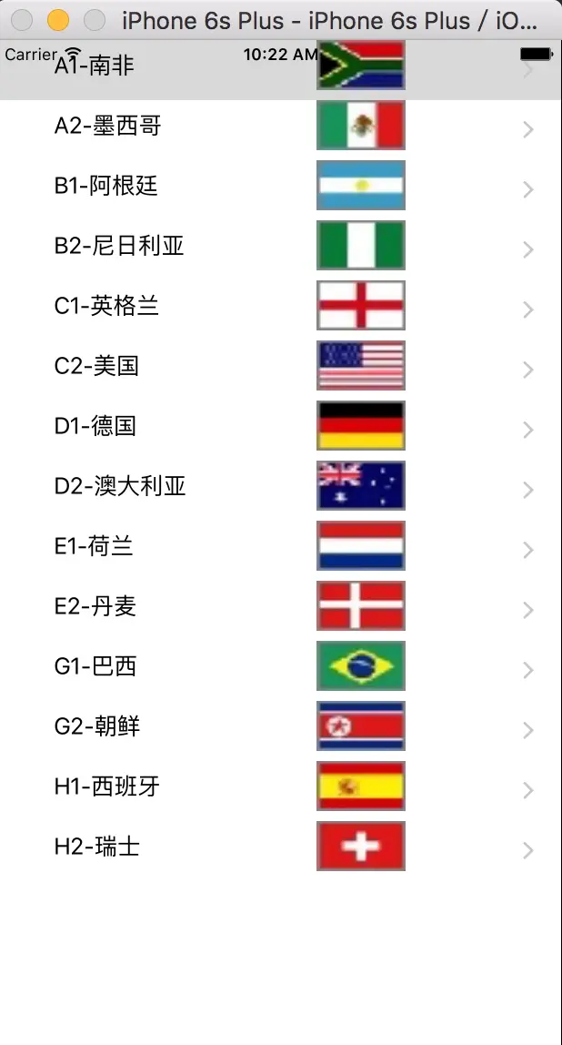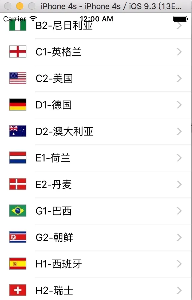 本实例自定义iOS Table View,简单实现世界各国名称及其对应国旗的列表展示,学习要点: