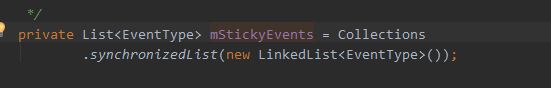 mStickyEvents是一个线程安全的集合,防止多线程调用。