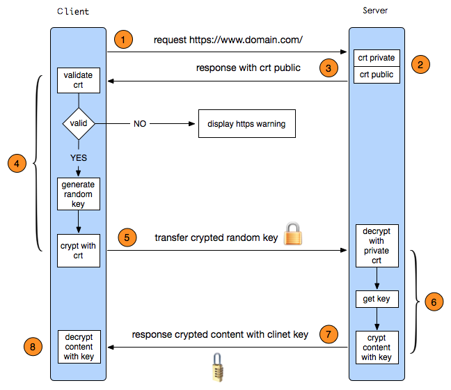 使用 Https 能从协议上解决安全问题。全面升级到 Https 是目前业界的趋势。 下图是 Https 的处理过程简图: