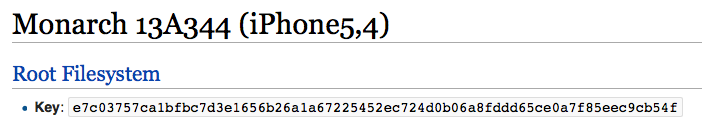 图2:iPhone5,4 固件的 Root Filesystem 解密 Key