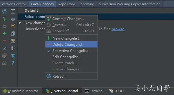 android studio svn commit changelist delete