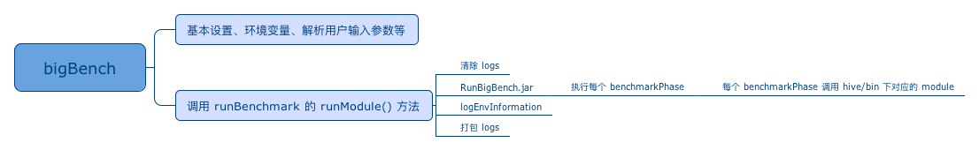 bin下有几个 module ,是执行时需要用到的脚本:bigBench、cleanLogs、logEnvInformation、runBenchmark、zipLogs等