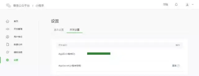 首先,我们需要拥有一个帐号,如果你能看到该文档,我们应当已经邀请并为你创建好一个帐号。注意不可直接使用服务号或订阅号的 AppID。 利用提供的帐号,登录 https://mp.weixin.qq.com ,就可以在网站的「设置」-「开发者设置」中,查看到微信小程序的 AppID 了。