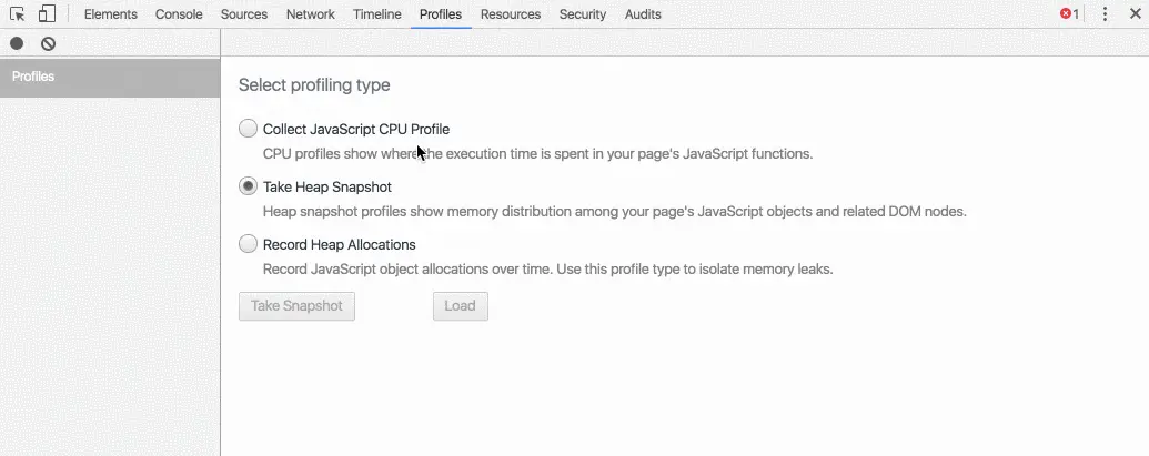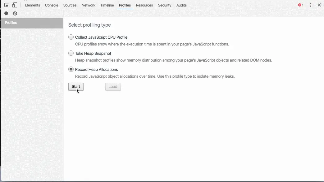 或者也可以通过profiles面板的Record Heap Allocations来观察内存泄露情况