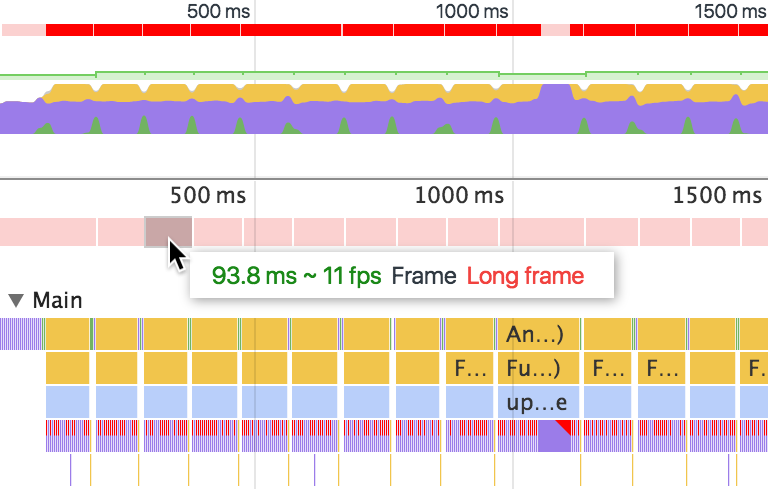 可以看到每一帧花费了太多的时间来完成,如果我们想得到平滑的动画最好保持在60 fps。