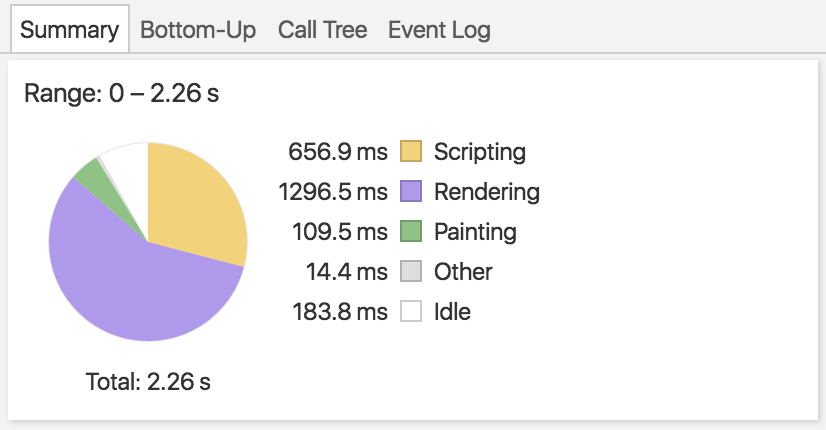 瞄一眼,可以看到Summary面板上显示浏览器花费大量时间在Rendering上面。