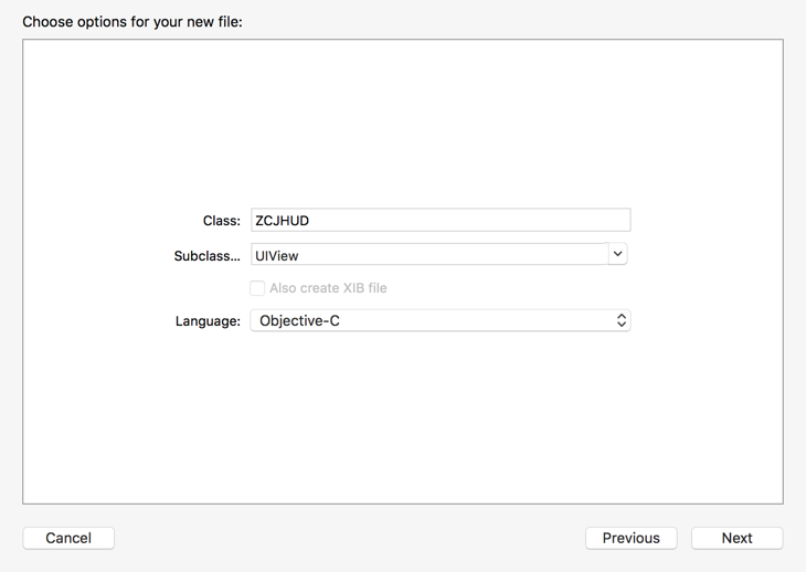 首先在demo中创建ZCJHUD,继承UIView。