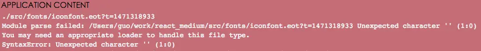 工程框架可以使用项目构建工具yeoman构建,使用方法可自行搜索。我们使用的是react-webpack,到使用iconfont 的时候会可能报如下错误