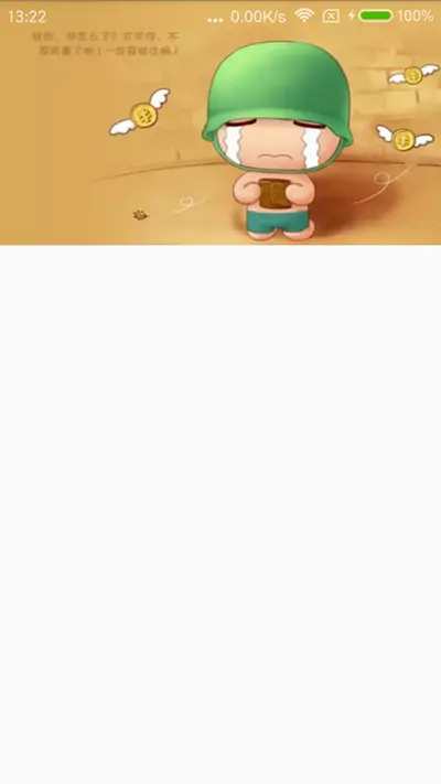 属性,再修改布局文件的根布局为需要的状态栏颜色,因根布局的颜色被修改,所以你需要在里边多嵌套一层布局,来指定界面的主背景色,比如白色等等,否则就和状态栏颜色一样了。说起来有点抽象,还是看具体的例子吧: