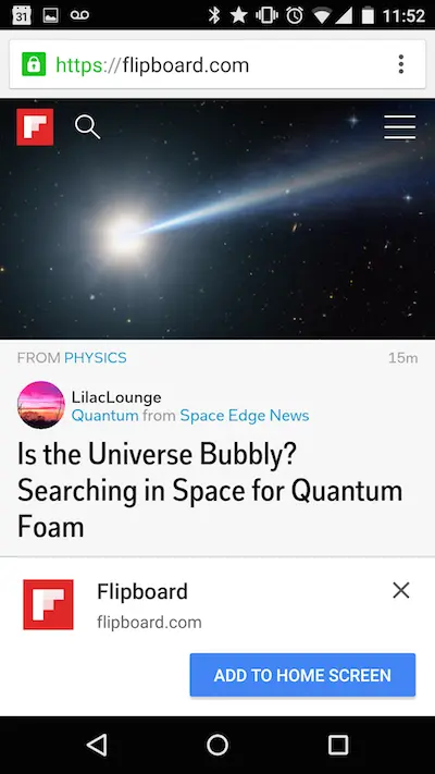 - 可安装的:通过浏览器提供的提示,可以把它加入主屏,允许用户把觉得有用的应用“保留”下来,而不用到应用商店去安装,那样太麻烦了。