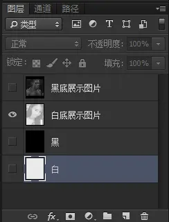 我们可以做一下图层合并处理(注意:黑底显示图片必须在白底显示图片的图层下方),将除了背景图以外的图层全合并起来,然后我们分别点亮看看效果 当白色背景点亮时