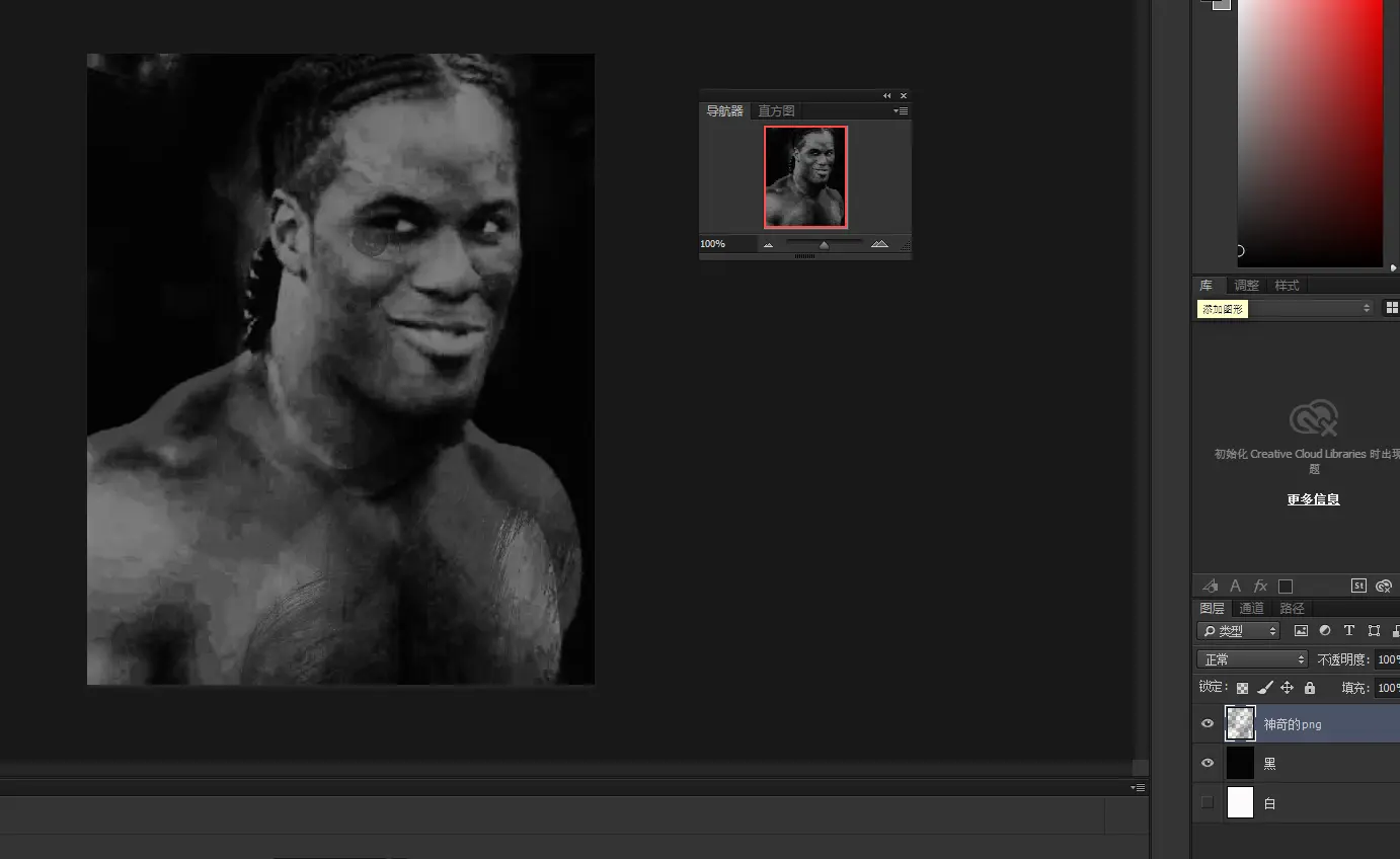 跟上面一样也是做好几层调整图层应用到该图层上,直到基本看不见那个黑人