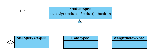 - Composite Spec: AndSpec, OrSpec