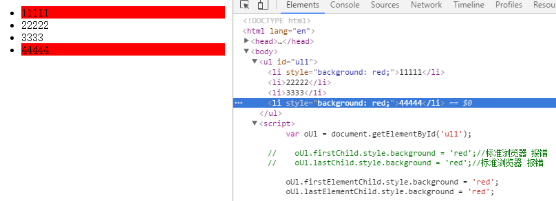 // oUl.lastChild.style.background = 'red';//标准浏览器 报错