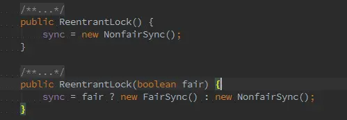 ReentrantLock是根据AQS实现的独占锁,提供了两个构造方法,如下图所示: