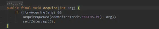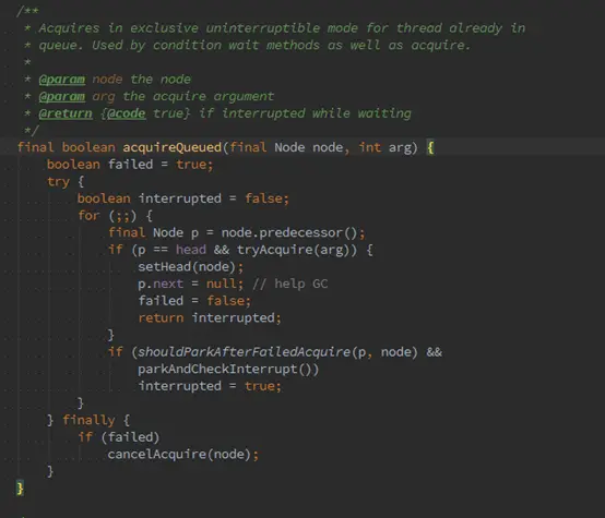 将node成功加入到链表中后,回到AQS的acquire()方法内部,开始执行acquireQueued方法: