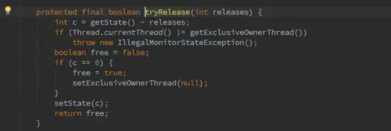 如下是子类Sync.tryRelease()的源码: