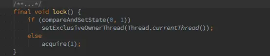 lock()方法内部是委托给sync变量来实现的,下面是NonfairSync的lock方法源码: