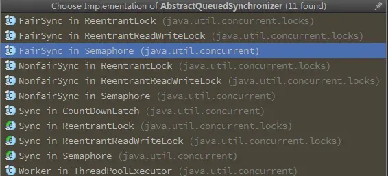 AQS全称AbstractQueuedSynchronizer,是java并发包中的一个类,该类更像是一个框架,提供了一些模板方法供子类实现,从而实现了不同的同步器,如下图所示。ReentrantLock,ReentrantReadWriteLock,ThreadPoolExecutor这些常见类都使用了AQS。