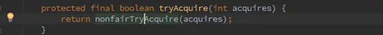 acquire方法在AQS类,这里,首先会调用tryAcquire方法,该方法的具体实现在NonfairSync中: