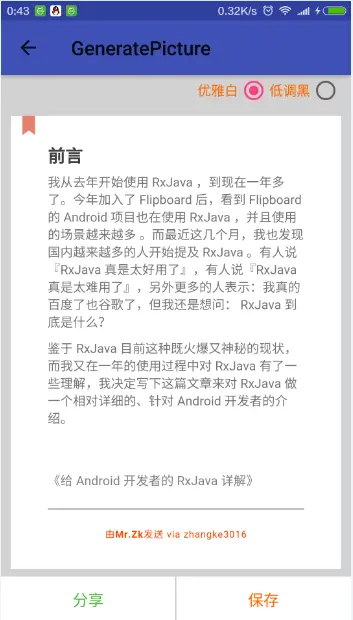 我们已经获取到了网页内容,按道理其实调用TextView的setText(Html.fromHtml())这个方法就可以显示我们选取的效果,但考虑到美观性以及截图保存功能、图片的正常显示,我选取用WebView来加载获取的网页内容。