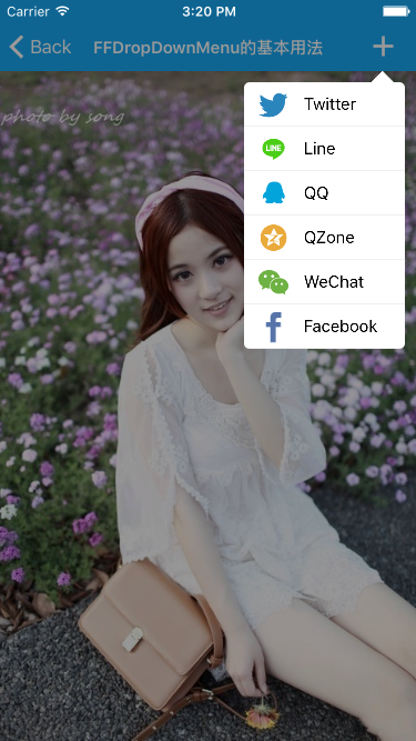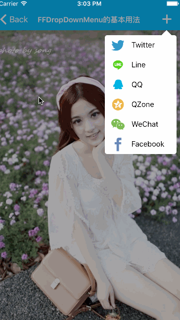 FFDropDownMenuto your project.【将FFDropDownMenu文件夹中的所有源代码拽入项目中】 -