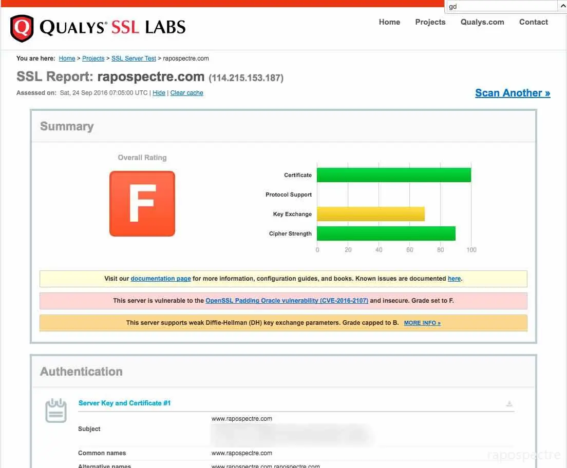 顺手来一发 SSLLABS测试,wtf 只有 F?