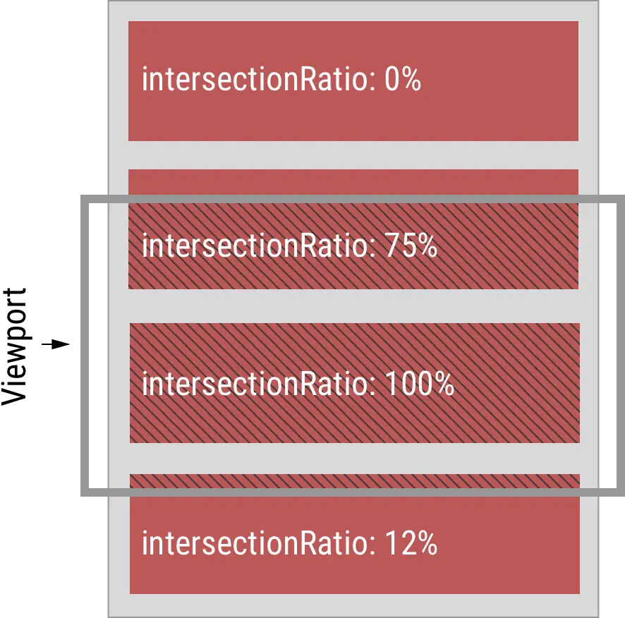 当目标元素和根元素相交时,用相交的面积除以目标元素的面积会得到一个 0 到 1(0% 到 100%)的数值: