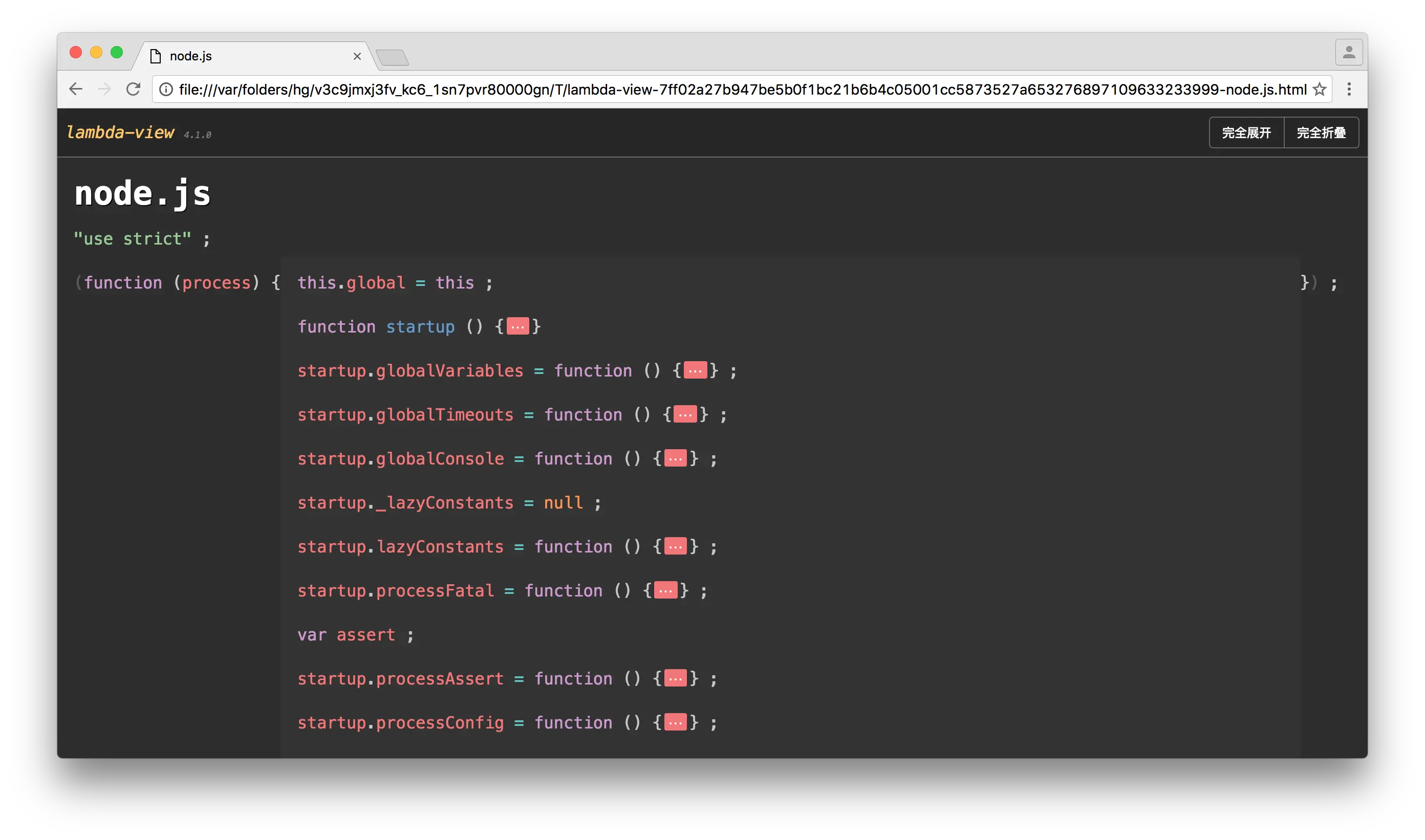 使用 lambda-view 打开后,可以看到源代码整体的轮廓其实就是一个立即调用的匿名函数: