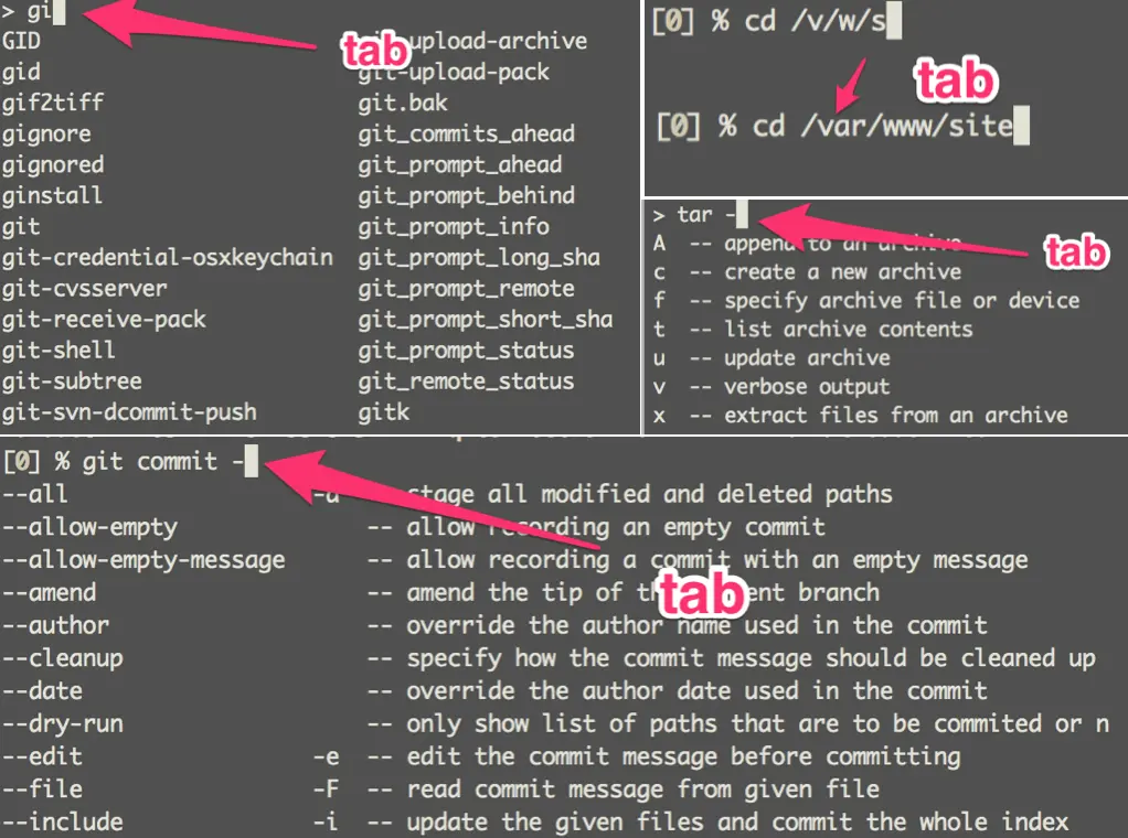 zsh 的命令补全功能非常强大,可以补齐路径,补齐命令,补齐参数等。(请问你记住 tar 的所有参数了吗 ,只要 tar -加 tab 键,再也不用 rtfm 了 )