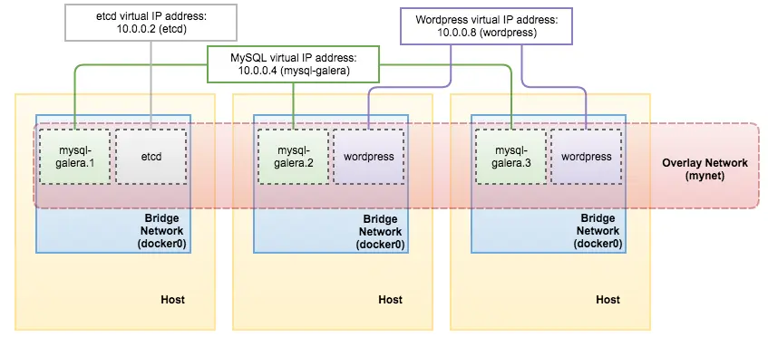 在本文中,我们将立足于3台Docker主机(docker1、docker2与docker3)在负载均衡Galera Cluster之上部署应用程序容器,同时将其接入一套覆盖网络。我们将利用Docker Engine Swarm模式作为编排工具。