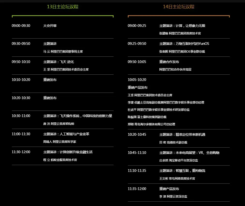 2016云栖大会参会嘉宾及主论坛议程