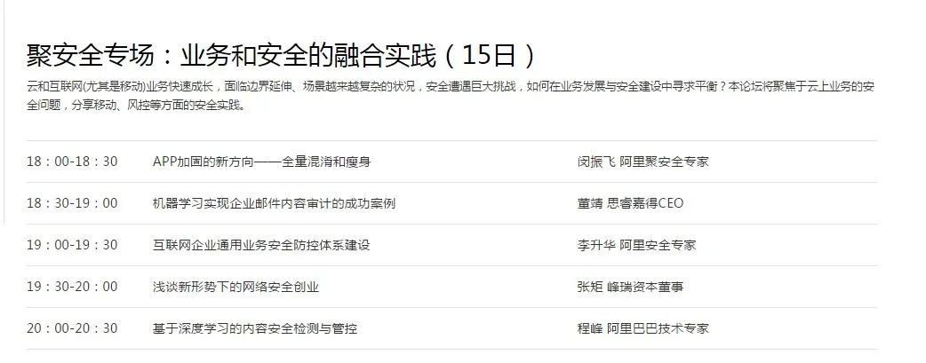 云和互联网(尤其是移动)业务快速成长,面临边界延伸、场景越来越复杂的状况,安全遭遇巨大挑战,如何在业务发展与安全建设中寻求平衡?云栖大会15日(周六)晚18:00-20:30,聚安全分论坛将聚焦于云上业务的安全问题,分享移动、风控等方面的安全实践。