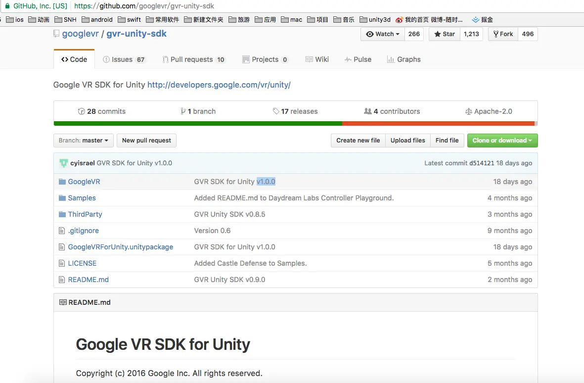 然后到github下载最新的GVR的SDK SDKv1.0.0的地址