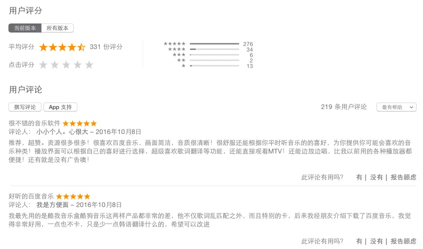 图 百度音乐app store用户评价