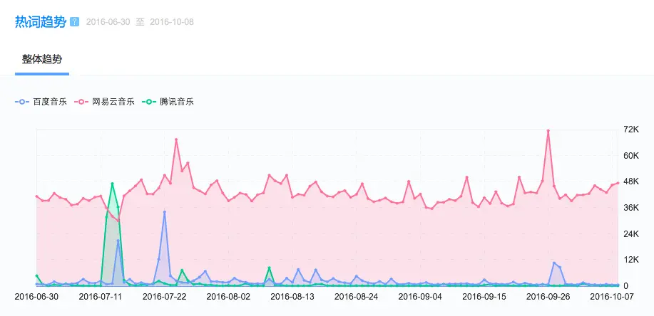 在如此强势的市场,百度音乐是一个低调而不容忽视的存在,背靠太合音乐——良好结合了传统音乐产业和移动互联网服务,拥有“艺人综合服务、版权运营发行、视听服务平台、现场活动演出、粉丝互动社群、娱乐整合营销”等相对完整产业链。