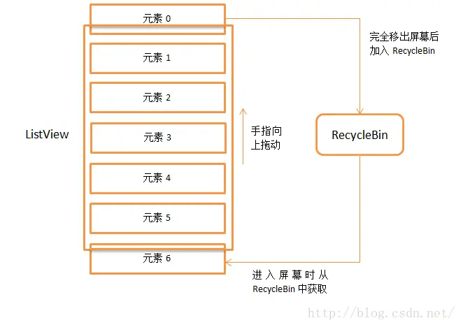 }这里在第19行会调用RecyleBin的getScrapView()方法来尝试从废弃缓存中获取一个View,那么废弃缓存有没有View呢?当然有,因为刚才在trackMotionScroll()方法中我们就已经看到了,一旦有任何子View被移出了屏幕,就会将它加入到废弃缓存中,而从obtainView()方法中的逻辑来看,一旦有新的数据需要显示到屏幕上,就会尝试从废弃缓存中获取View。所以它们之间就形成了一个生产者和消费者的模式,那么ListView神奇的地方也就在这里体现出来了,不管你有任意多条数据需要显示,ListView中的子View其实来来回回就那么几个,移出屏幕的子View会很快被移入屏幕的数据重新利用起来,因而不管我们加载多少数据都不会出现OOM的情况,甚至内存都不会有所增加。那么另外还有一点是需要大家留意的,这里获取到了一个scrapView,然后我们在第22行将它作为第二个参数传入到了Adapter的getView()方法当中。那么第二个参数是什么意思呢?我们再次看一下一个简单的getView()方法示例: