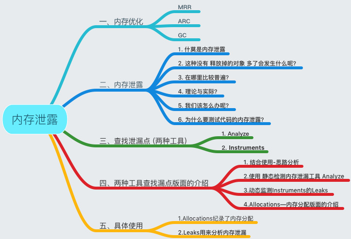 2>.Leaks用来分析内存泄漏。ARC中引起的内存泄漏原因就是引用环。第一步