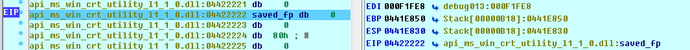 正如上表所示,0441E8C4就是4字节对齐的,大于且接近0441E898,是一个非常合适的栈位置。