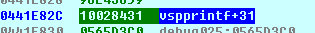 在笔者调试时,将其覆盖为0441E82C,即当前函数返回到vspprintf()函数的返回地址: