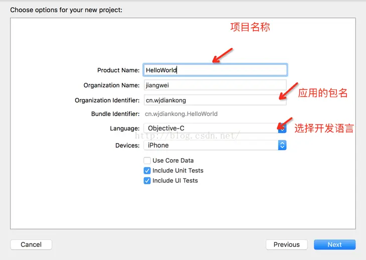 下面先用Xcode来新建一个HelloWorld程序: