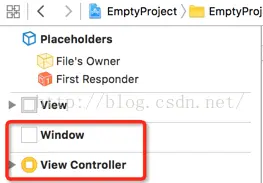 在上面介绍xib中说到了,xib不仅可以添加控件视图,也可以添加各种对象的,比如这里我们可以添加一个UIWindow和UIViewController对象:
